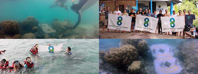 Sebuah prasasti berbentuk angka 8 menjadi tanda dan harapan keberlanjutan bahwa kami akan senantiasa berpartisipasi dalam memberikan informasi pelestarian lingkungan hidup di Indonesia serta 18 bibit terumbu karang adalah sebuah tanda bukti dan janji kami untuk terus melakukan aksi pelestarian lingkungan hidup.