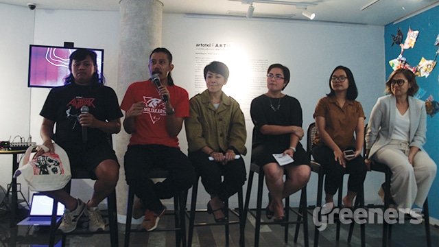 Seniman Yogyakarta Mulyakarya, World Wide Fund for Nature (WWF) Indonesia, dan Artotel Earth, dalam acara konferensi pers serta pameran kolaborasi seni, di Jakarta Pusat, Kamis, 28 November 2019. Foto: www.greeners.co/Ridho Pambudi