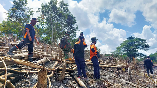 Petugas meninjau wilayah yang terbakar di Saripoi, Kalimantan Tengah, pada Minggu. 23 Agustus 2020. Foto: Badan Nasional Penanggulangan Bencana (BNPB