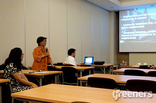 Naning Adiwoso (berdiri memegang mic), Chair Person Green Building Council (GBC Indonesia) menyatakan bahwa konsep “green building” juga merujuk pada “healthy building”. Foto: greeners.co/Danny Kosasih