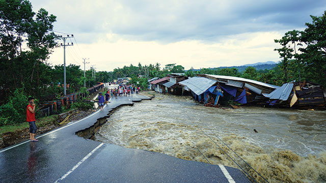 Bencana banjir yang melanda Desa Uepai, Kabupaten Konawe, Sulawesi Tenggara, Senin, 10 Juni 2019. Banjir merusak infrastruktur jalan raya. Foto: Shutterstock