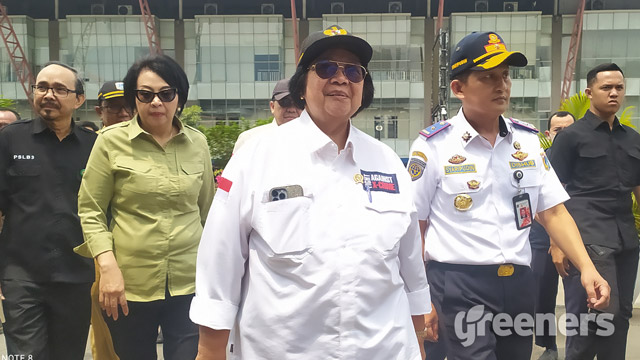 Dirjen PSLB3 KLHK Rosa Vivien Ratnawati ( kedua kiri belakang) mendampingi Menteri LHK saat meninjau Terminal Pulo Gebang. Foto: Greeners/Ramadani Wahyu