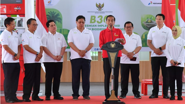 Presiden Joko Widodo didampingi sejumlah menteri dan direktur Pertamina saat menyampaikan implementasi program Biodiesel 30 (B30), di Jakarta, Senin (23/12). Foto: Kementerian Sekretariat Negara dan Sekretariat Kabinet Republik Indonesia.