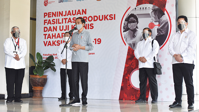 ”Kita berharap uji klinis yang ketiga ini akan diselesaikan dalam enam bulan dan di bulan Januari kita sudah bisa memproduksi sekaligus siap diberikan kepada seluruh masyarakat di tanah air,” tutur Presiden Joko Widodo saat memberikan keterangan pers di Gedung Eyckman, usai meninjau Produksi Vaksin di Laboratorium Biofarma, Bandung, Jawa Barat, Selasa (11/08/2020).