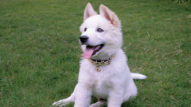 Telinga anjing kintamani berdiri tegak dan berbentuk segitiga dengan ujung berwarna kemerahan. Foto: wikimedia commons