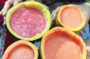 Eat Raja adalah kafe tanpa limbah yang tidak menggunakan gelas plastik. Mereka memanfaatkan cangkang kulit buah sebagai wadah jus.
