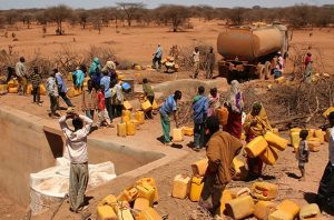 Akibat kelangkaan air yang berkepanjangan di Somalia produksi makanan melemah hingga muncul bencana kelaparan.