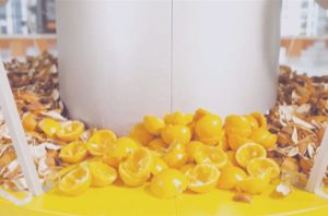 Sebuah studio Italia, Carlo Ratti Associati mengembangkan bar jus jeruk dan mengubah sisa kulitnya menjadi cangkir bioplastik.