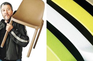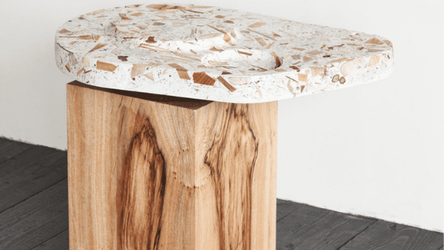 Bahan dasar kursi terdiri dari serbuk gergaji yang kemudian dikombinasikan dengan potongan polimer sintetik sehingga menghasilkan produk daur ulang.