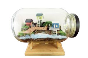 Produk lampu dekoratif bernama Anbottle ini menggunakan kayu sisa produksi dan juga botol bekas sebagai bahan utama pembuatannya.