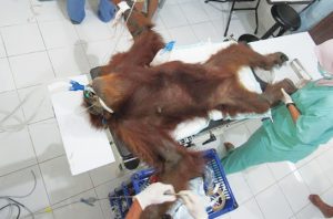 Aceh Natural Resources Conservation Agency, WCS-IP and HOCRU-IC teams evacuated a female Sumatran orangutan (Pongo abelii) and her offspring. The mother is in critical condition with 74 pellets are found inside of her body.