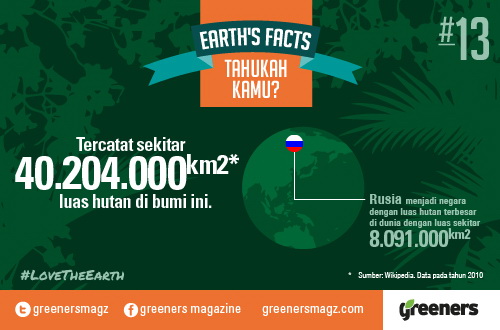 Tercatat sekitar 40.204.000 kilometer persegi luas hutan di bumi ini dan Rusia menjadi negara dengan luas hutan terbesar di dunia dengan luas sekitar 8.091.000 kilometer persegi.