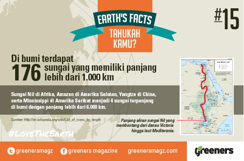 Tercatat 176 sungai di bumi yang memiliki panjang sama dengan atau lebih dari 1.000 km. Sungai Nil di Afrika, Amazon di Amerika Selatan, Yangtze di China, serta Mississippi di Amerika Serikat menjadi 4 sungai terpanjang di bumi dengan panjang lebih dari 6.000 km.