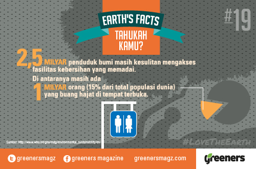 2,5 milyar penduduk bumi masih kesulitan mengakses fasilitas kebersihan yang memadai. Di antaranya masih ada 1 milyar orang (15% dari total populasi dunia) yang buang hajat di tempat terbuka.