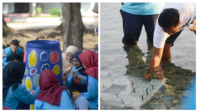 Hari pertama acara diisi dengan dengan berbagai kegiatan sosial di antaranya mendekorasi taman baca dan donasi buku, mural pada papan petunjuk dan tong sampah yang nantinya ditempatkan di berbagai titik di Pulau Pari, penanaman terumbu karang, edukasi kesehatan dan pentas seni.