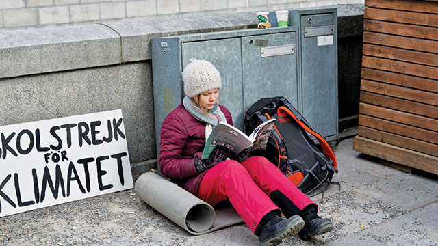Bermula dari Agustus 2018, Greta Thunberg menghabiskan hari-hari sekolahnya di depan parlemen Swedia. Foto: Shutterstock.