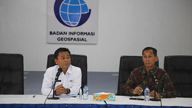 Kepala BIG Muh Aris Marfai (kiri) dalam media gathering capaian BIG di kantor BIG, Cibinong, Bogor. Foto: BIG