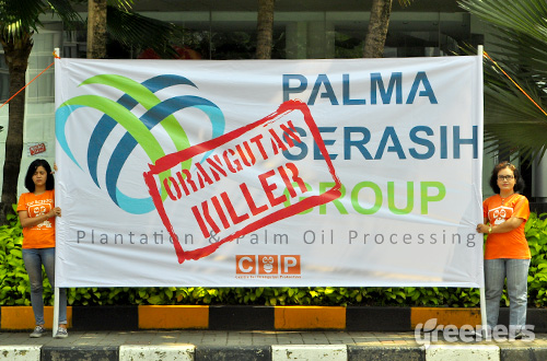 Jakarta (Greeners) – Centre for Orangutan Protection (COP) menggelar aksi di depan gedung Permata Kuningan, Jakarta Pusat sambil membentangkan spanduk bertuliskan “ORANGUTAN KILLER” pada Kamis (10/03) kemarin. COP mendesak PT Anugerah Energitama (PT AE) untuk berhenti membahayakan nyawa orangutan.