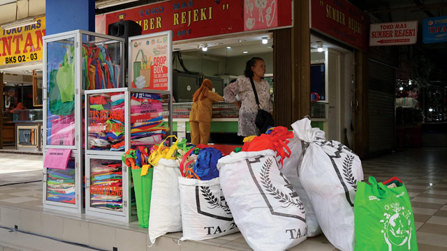 “Spunbond terbuat dari plastik yang membutuhkan waktu ratusan tahun untuk terurai secara alami di lingkungan. Jika pemakaiannya tidak guna ulang, sama saja dengan kantong plastik sekali pakai,” jelas Asep.
