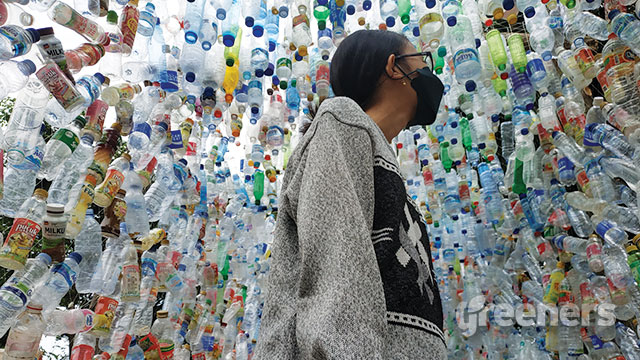 Pameran Fish Fersus Flastik menampilkan tiga instalasi dan satu patung. Pertama, lorong yang terdiri dari ribuan botol plastik. Menurut ECOTON, penggunaan botol plastik sekali pakai ini mencapai 4.400 buah per orangnya dalam kurun waktu tiga tahun.