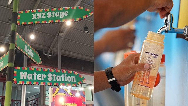 Keempat pilar ini terasa pada setiap sudut penyelenggaraan Synchronize Festival. Seperti aturan membawa wadah minum (tumbler) bagi seluruh panitia dan pengisi acara, serta disediakan Water Station yang bisa digunakan oleh seluruh panitia dan pengunjung festival untuk isi ulang tumbler-nya.