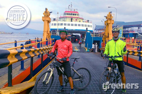 Dengan membayar Rp 8.000/sepeda, kami menaiki kapal ferry untuk menyeberang ke pulau Bali pada pukul setengah lima sore. Beberapa di antara anggota tim Journalism On Bike ternyata baru pertama kali merasakan naik kapal laut. Untung saja tidak ada yang mabuk laut.