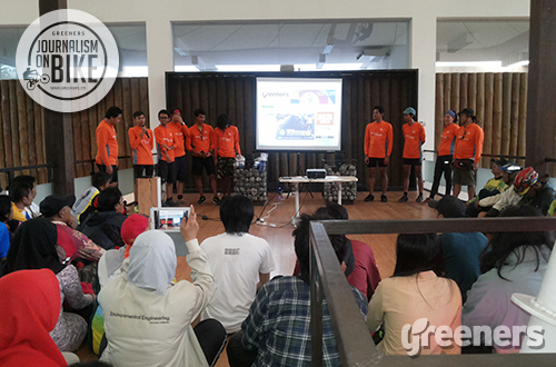 Dua jam berkutat dengan kemacetan dari Padalarang-Bandung, akhirnya kami tiba di Eiger Adventure Store di jalan Sumatera, Bandung. Disana kami mengadakan acara presentasi dan diskusi lingkungan dengan beberapa komunitas sepeda dan pecinta lingkungan. Acara di hadiri oleh 80 orang tamu. Setelah rangkaian acara usai pukul 19.15 WIB, kami pun meluncur ke penginapan untuk beristirahat.