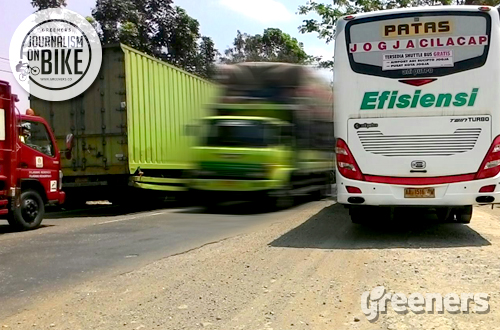 Selain jalanan yang bergelombang, angin dari truk – truk yang melintas membuat handling saat bersepeda menjadi lebih sulit. Sungguh bukanlah hal yang mudah mengendalikan sepeda dalam kondisi demikian.