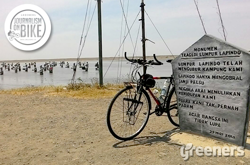 Dalam perjalanan, kami bertemu Mbo Poncokusumo, salah satu anggota Bike to Work Sidoarjo. Oleh Mbo Poncokusumo, kami diantar menuju lokasi Lumpur Lapindo. Di tempat itu kami turut merasakan penderitaan warga yang terkena musibah Lumur Lapindo. Sebuah tulisan “Wisata Lumpur Panas” dan patung-patung manusia di dalam lumpur mencerminkan kesedihan warga karena kehilangan kampung halamannya.
