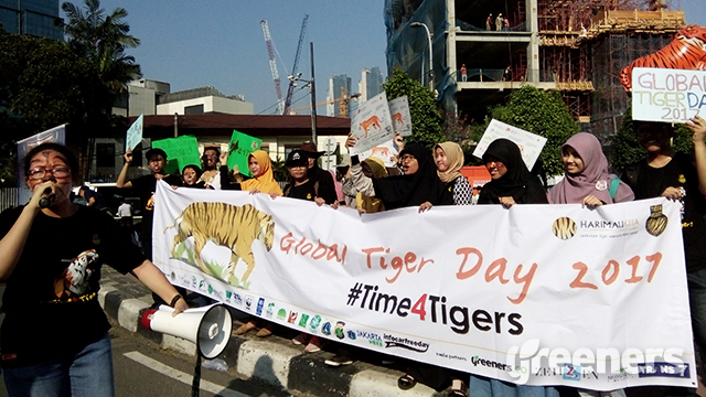 “Tahun ini, Global Tiger Day mengusung tema ‘Time for Tigers’. Tujuan kami (Forum HarimauKita) mengadakan perayaan Global Tiger Day di area car free day Jakarta adalah untuk memberi tahu masyarakat bahwa populasi harimau Sumatera sudah terancam punah. Harimau Sumatera merupakan harimau endemik satu-satunya di Indonesia yang masih tersisa. Sayangnya, banyak masyarakat Indonesia yang masih tidak peduli dan masih menganggap harimau adalah ‘hama’, hewan perusak,” ujar Ahmad Rizal alias Rizal, ketua pelaksana peringatan Global Tiger Day di Jakarta (30/7).