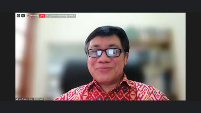 Direktur Lingkungan Hidup Kementerian PPN/Bappenas, Ir. Medrilzam, M.Prof. Econ, Ph.D memberikan sambutan pembuka dalam Konferensi Pers, Rabu (07/07/2021). Foto: ICEF.