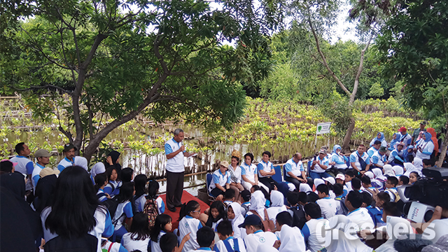 “Kalau mangrove di Jakarta rusak maka intrusi air laut akan semakin masuk ke daratan. Mangrove itu berguna bagi kita. Bisa diolah untuk makanan, membuat kertas, untuk batik, tepung, sirup sampai untuk wisata alam,” ucap Hilman.