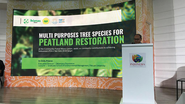 Belantara Foundation bersama Gabungan Kelompok Tani Hutan (Gapoktanhut) Wono Lestari dan pemangku kepentingan setempat dapat dukungan dari KPHP Tanjung Jabung Timur Unit XIV, One Tree Planted dan APP Sinarmas mengembangkan program proteksi dan restorasi lahan gambut melalui agroforestri ini.