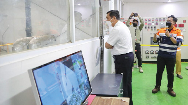Menko Marves Luhut Binsar P mengamati proses pengolahan sampah di PLTSa Merah Putih. Foto: DLH DKI Jakarta