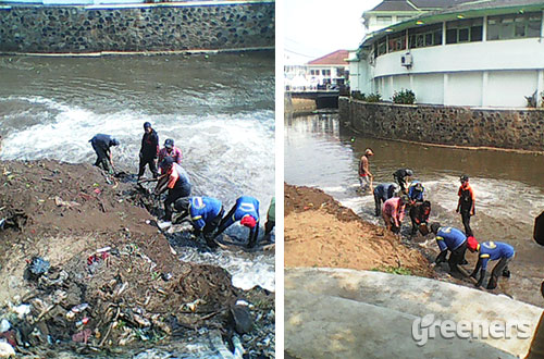Bandung (Greeners) – Dalam rangka “Bandung Eid Fest 2015”, UPTD DAS Cikapundung Dinas Bina Marga Kota Bandung membersihkan sedimentasi dan sampah di kawasan Sungai Cikapundung, Selasa (30/06).