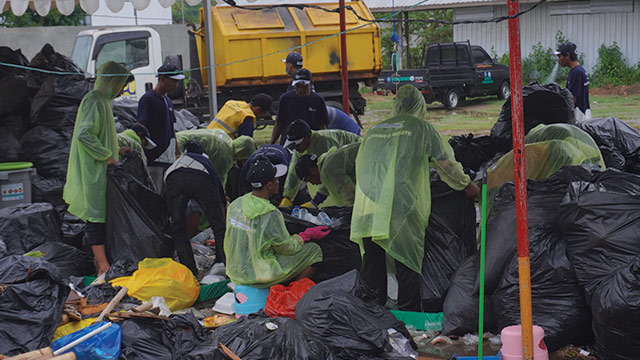 Pascakegiatan, tim yang bertanggung jawab terhadap pengelolaan sampah langsung sigap membersihkan, memilah sampah hingga mengirimnya ke pusat daur ulang (PDU) hingga dini hari.