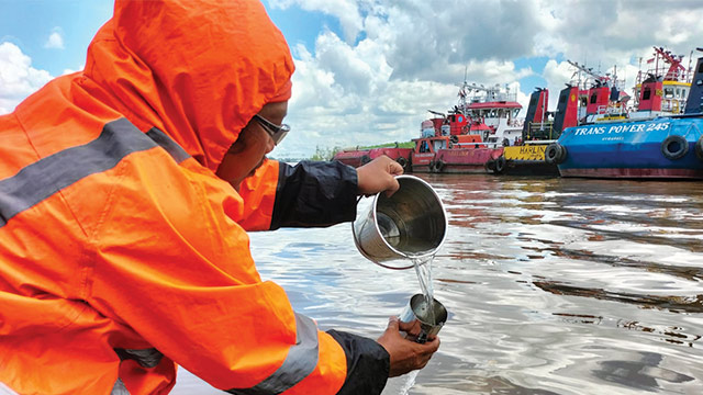 Dengan menggunakan perahu kelotok Tim ESN yang terdiri dari sembilan orang menyusuri sungai melakukan uji kualitas air, uji mikroplastik dan pemetaan timbulan sampah di sungai.
