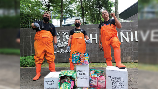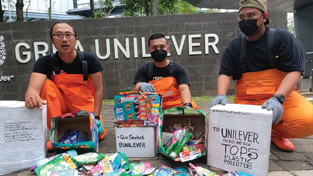 Dalam aksinya tersebut, para aktivis lingkungan tak mau beranjak sebelum sampah-sampah sachet tersebut pihak Unilever terima langsung. Sembari menunggu negosiasi berlangsung, beberapa orang melakukan orasi di depan Graha Unilever Indonesia.