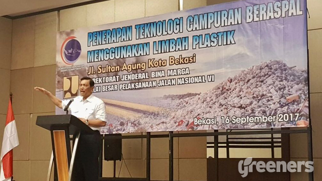 Menteri Koordinator Bidang Kemaritiman Luhut Binsar Pandjaitan mengatakan, setelah ujicoba yang dilakukan di Bali sukses, Bekasi adalah lokasi penerapan untuk jalan nasional yang pertama karena kriterianya sudah masuk dalam spesifikasi Bina Marga. Ia mengklaim kalau penelitian mengenai pemanfaatan limbah plastik untuk bahan campuran aspal sudah dimulai sejak 2008 yang dilakukan oleh Badan Penelitian dan Pengembangan Kementerian Pekerjaan Umum dan Perumahan Rakyat berdasarkan inisiasi dari Kemenko Kemaritiman.
