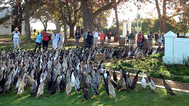 Daripada mengeluarkan uang dan mencemari udara di sekitar dengan menyemprotkan pestisida, kebun anggur Vergenoegd lebih memilih untuk memanfaatkan ternaknya dalam membasmi hama. Sejak tahun 1984, pada setiap pukul 09.45 pagi, hampir sebanyak 900 ekor bebek jenis Indian Runner dilepaskan di kebun anggur yang terletak di Stellenbosch, Afrika Selatan tersebut untuk menjaga agar perkebunan bebas dari hama siput.