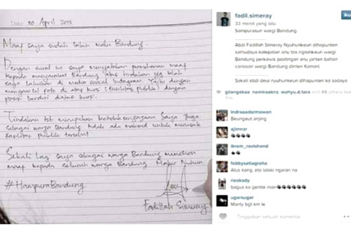 Ini surat permintaan maaf Fadillah Simeray yang ditujukan kepada seluruh warga Bandung. Foto: instagram fadil.simeray