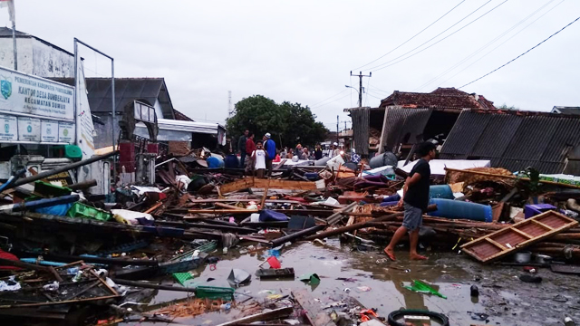 Salah satu wilayah di kecamatan Sumur, Kabupaten Pandeglang, Banten yang porak poranda setelah terkena terjangan tsunami pada Sabtu (22/12/2018). Foto: BNPB