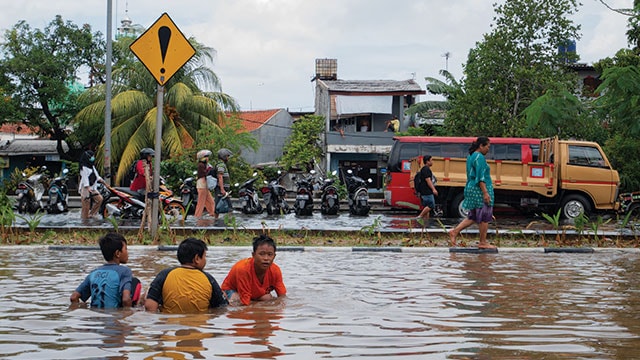 Interaksi masyarakat ketika banjir awal tahun 2020, Jelambar Grogol, Jakarta, (11/1/2020). Foto: Shutterstock.