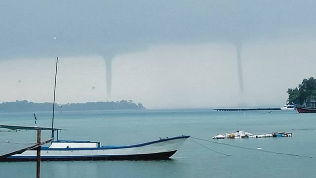 Jakarta (Greeners) – Fenomena langka penampakan tiga puting beliung terjadi secara bersamaan di perairan Kepulauan Seribu. Tiga puting beliung ini terjadi di daerah Karang Lebar, Kelurahan Harapan, Kecamatan Kepulauan Seribu Utara, Kabupaten Kepulauan Seribu, Provinsi DKI Jakarta pada Senin (23/10/2017) pukul 09.00 WIB kemarin.