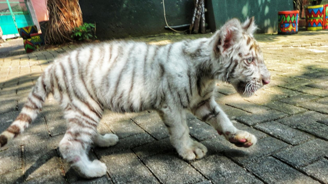 “Ini pengalaman luar biasa. Saya gemas lihat harimau putih yang masih kecil seperti ini. Senang bisa menggendong dan befoto,” kata Irma, salah satu pengunjung.