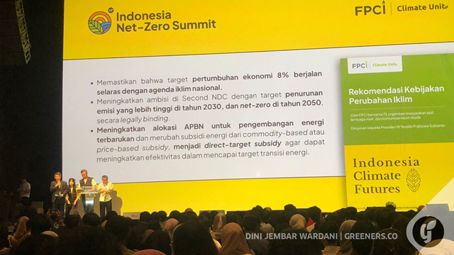 Jakarta (Greeners) – Foreign Policy Community of Indonesia (FPCI) bersama 72 organisasi masyarakat sipil, lembaga riset, dan komunitas kaum muda menyerahkan rekomendasi kebijakan perubahan iklim kepada Presiden RI Terpilih, Prabowo Subianto. Penyerahan rekomendasi ini bertujuan untuk mendukung realisasi agenda iklim dan transisi energi nasional yang lebih konkret, ambisius, dan berkeadilan bagi seluruh masyarakat Indonesia.