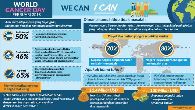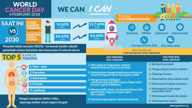 Sebagai informasi, tanggal 4 Februari diperingati sebagai Hari Kanker Sedunia. “Kita Bisa. Aku Bisa” menjadi tema tahun 2018 ini dengan sub tema adalah “Aku Bisa Melakukan Deteksi Dini. Kita Bisa Mengerti Kanker”. Tema ini bertujuan untuk menyebarkan pesan bahwa setiap orang baik secara bersama atau individual bisa mengambil peran dalam mengurangi beban dan permasalahan kanker.