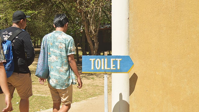 Papan penunjuk toilet umum di kawasan pariwisata Pulau Rinca, Nusa Tenggara Timur. Foto: Shutterstock.
