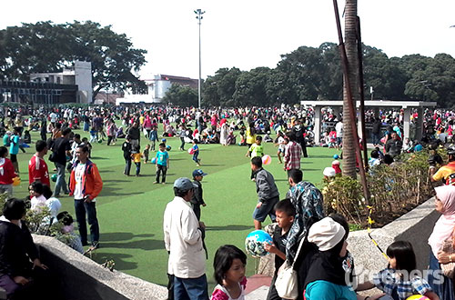 Dari pantauan Greeners pada Minggu pagi (19/4), sekitar kawasan jalan Asia-Afrika nampak lebih padat dibanding Minggu sebelumnya. Hal ini membuat petugas kepolisian yang bertugas berusaha mengurai kepadatan lalu lintas yang terjadi mulai dari depan hotel Savoy Homan hingga taman Alun-alun Bandung.