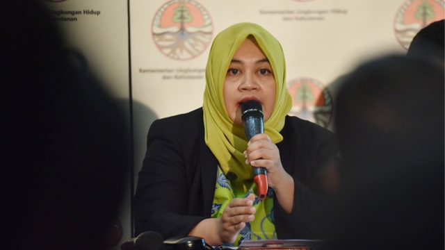 Pelaksana Tugas Inspektur Jenderal Kementerian Lingkungan Hidup dan Kehutanan (KLHK) Laksmi Wijayanti saat menerangkan Kajian Lingkungan Hidup Strategis (KLHS), di Jakarta Pusat, Jumat, 20 Desember 2019. Foto: Kementerian Lingkungan Hidup dan Kehutanan.